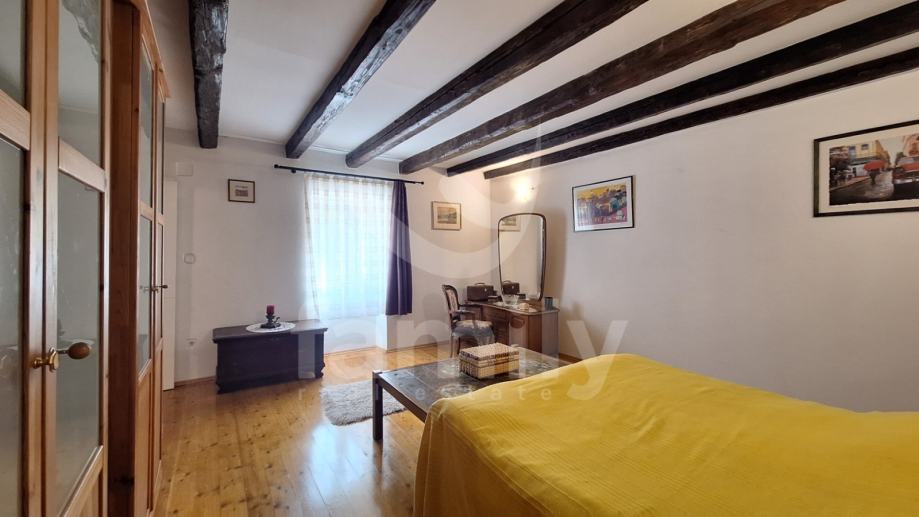 Gornja etaža: veći dnevni boravak s potpuno funkcionalnim ognjištem, kuhinja, kupaonica, ostava te zasebna soba s dodatnom ostavom.
