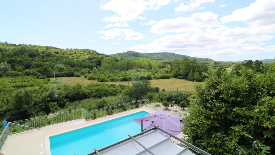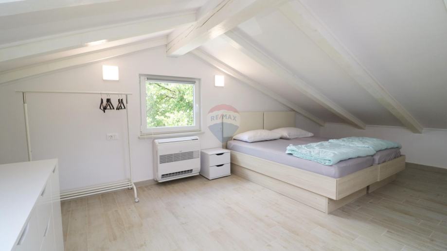 Kuća se nalazi na udaljenosti od 5 minuta vožnje do centra grada Pazina, što čini ovu nekretninu savršenom za kvalitetan cjelogodišnji život ljubitelja prirode i mira.