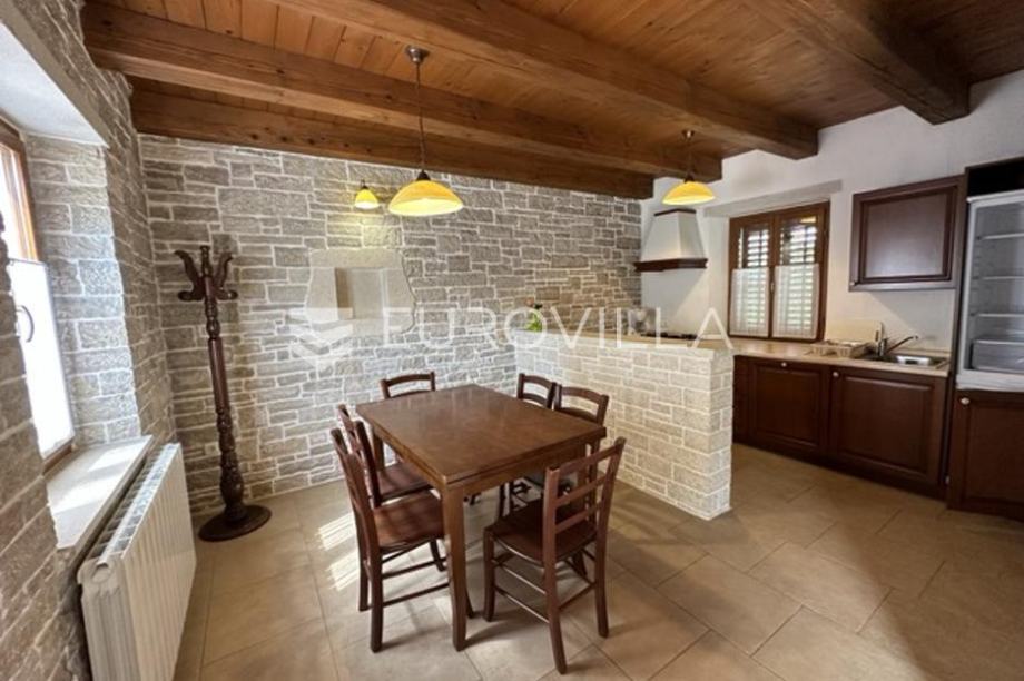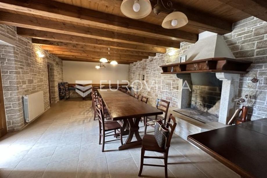U srcu zelene Istre, na brežuljku iznad slikovitog gradića Pazina, smjestio se izvanredan kompleks od pet autentičnih kamenih kuća, nudeći savršeno utočište za one koji traže spoj mira, privatnosti i luksuza. Ova impresivna nekretnina, prostire se na prostranoj parceli od 1200 m2 u idiličnom Starom Pazinu, dijelu grada poznatom po svojoj mirnoći i netaknutoj prirodi. Zbog svoje lokacije, okružena zelenilom i tišinom, obećava život ispunjen spokojem i udobnošću, daleko od užurbanosti svakodnevice i gradske vreve, a istovremeno pruža izvrsnu povezanost s cijelom Istrom i njezinim atrakcijama.Kompleks je promišljeno dizajniran s naglaskom na fleksibilnost i funkcionalnost, nudeći ukupnu stambenu površinu od 450 m2. Iako se sastoji od pet zasebnih stambenih jedinica, svaka kuća zadržava svoju intimu i zaseban ulaz, pružajući potpunu privatnost svim stanarima. Jedna samostojeća kamena kuća stoji ponosno odvojeno, ističući se svojom ekskluzivnošću, dok su preostale četiri elegantno povezane, no u naravi funkcioniraju kao četiri neovisne stambene cjeline s vlastitim ulazima, prostranim terasama i potpunom autonomijom. Ova jedinstvena arhitektonska rješenja čine ga idealnim izborom za veliku obitelj koja cijeni zajedništvo, ali i individualni prostor, za multigeneracijski život gdje svatko ima svoj kutak mira, ili, pak, kao izvanrednu investiciju u turistički najam s visokim povratom uloženih sredstava, gdje se svaka jedinica može zasebno iznajmljivati, maksimizirajući profitabilnost.Svaka od ovih šarmantnih kuća dizajnirana je s iznimnom pažnjom prema detaljima i maksimalnom komforu, odražavajući tradicionalnu istarsku arhitekturu spojenu s modernim sadržajima. U prizemlju svake jedinice nalazi se prostrani dnevni dio koji se stapa s potpuno opremljenom kuhinjom i blagovaonicom, stvarajući savršen otvoren prostor za opuštanje, obiteljska okupljanja i druženja s prijateljima. Svaka jedinica u prizemlju također posjeduje modernu kupaonicu, osiguravajući praktičnost i udobnost. Elegantnim stubištem dolazi se na kat gdje su smještene dvije udobne spavaće sobe, pružajući privatnost i miran san, idealne za odmor nakon istraživanja istarskih ljepota. Osim ovih pet kuća, iznad centralne konobe, koja predstavlja srce cijelog kompleksa, nalazi se šarmantan studio apartman. On je idealan za goste, osoblje ili kao dodatna jedinica za najam, povećavajući ukupni smještajni kapacitet kompleksa. S ukupno deset prostranih soba i pet modernih kupaonica, ova nekretnina osigurava dovoljno prostora i udobnosti za sve stanare, bilo da se radi o velikoj obitelji ili turističkim gostima.Centralni dio kompleksa kruni veličanstvena konoba, koja se ističe kao prava oaza za druženje i zabavu. Opremljena je impresivnim kaminom, koji pruža toplinu i ugođaj tijekom hladnijih mjeseci, dvije dodatne, potpuno opremljene kuhinje i prostranom zajedničkom kupaonicom. Ovaj prostor je zamišljen kao ultimativno mjesto okupljanja, idealno za velika obiteljska slavlja, proslave važnih događaja, ili pak opuštena druženja s prijateljima uz gurmanske specijalitete. Njegova multifunkcionalnost omogućuje da služi i kao centralna recepcija i zajednička blagovaonica za turističke grupe, što dodatno povećava atraktivnost posjeda za investitore. Njegova prostranost i vrhunska opremljenost omogućuju fleksibilnu upotrebu, dodajući iznimnu vrijednost cijelom posjedu i čineći ga istinskim draguljem kompleksa, gdje se stvaraju nezaboravne uspomene.Ova starogradnja izgrađena 2005. godine, pažljivo i s ljubavlju renovirana 2019., plijeni poglede svojom autentičnom kamenom fasadom koja joj daje bezvremenski šarm i neusporedivu izdržljivost. Kameni zidovi ne samo da doprinose estetskoj privlačnosti i savršeno se uklapaju u mediteranski krajolik, već i osiguravaju izvanrednu prirodnu izolaciju. To znači da se ugodna temperatura unutar kuća održava tijekom cijele godine: svježe i prozračno ljeti, te toplo i ugodno zimi, značajno smanjujući troškove energije. Orjentacija na jug i zapad osigurava obilje prirodnog svjetla tijekom cijelog dana, stvarajući prozračan i svijetao ambijent, te nudi predivne poglede na okolni zeleni krajolik i očaravajuće zalaske sunca, pružajući idilično okruženje za život i odmor.Vanjski prostor predstavlja pravu mediteransku oazu mira i ljepote, savršeno stopljenu s prirodom. Prostrana okućnica krasi se bujnim, pažljivo uređenim vrtom, savršeno održavanim zahvaljujući modernom sustavu navodnjavanja. Ovaj sustav osigurava bujnost zelenila i ljepotu biljaka tijekom cijele godine bez napora, stvarajući idiličan ambijent za opuštanje i uživanje u prirodi. Centralno pozicioniran bazen s prostranim sunčalištem nudi osvježenje u vrućim ljetnim danima i idealno je mjesto za opuštanje i uživanje na suncu, dostupan svim stanarima kompleksa. Nekretnina također nudi prostrane, natkrivene i nenatkrivene terase, savršene za jutarnju kavu uz pjev ptica, večernja druženja uz čašu istarskog vina ili jednostavno uživanje u miru i tišini prirode. Dodatna prostrana ostava pruža praktično rješenje za pohranu vrtlarskog alata, bicikala ili drugih potrepština, osiguravajući red i funkcionalnost.Za cjelogodišnji komfor i ugodan boravak, u svim je kućama provedeno centralno grijanje, osigurano putem tri velika spremnika za naftu, što garantira pouzdan, efikasan i ekonomičan sustav grijanja čak i tijekom hladnijih mjeseci. Iako interijer iziskuje manja ulaganja kako bi se prilagodio osobnim preferencijama novih vlasnika i donio do punog sjaja, vječan kamen koji krasi ove kuće osigurava da će njihova vrijednost i atraktivnost rasti s vremenom, čineći ovo izuzetno stabilnom investicijom u budućnost. Ovo je jedinstvena prilika za stvaranje doma iz snova, gdje se tradicija susreće s modernim komforom, ili za razvijanje luksuznog turističkog kompleksa u jednom od najpoželjnijih i najbrže rastućih turist