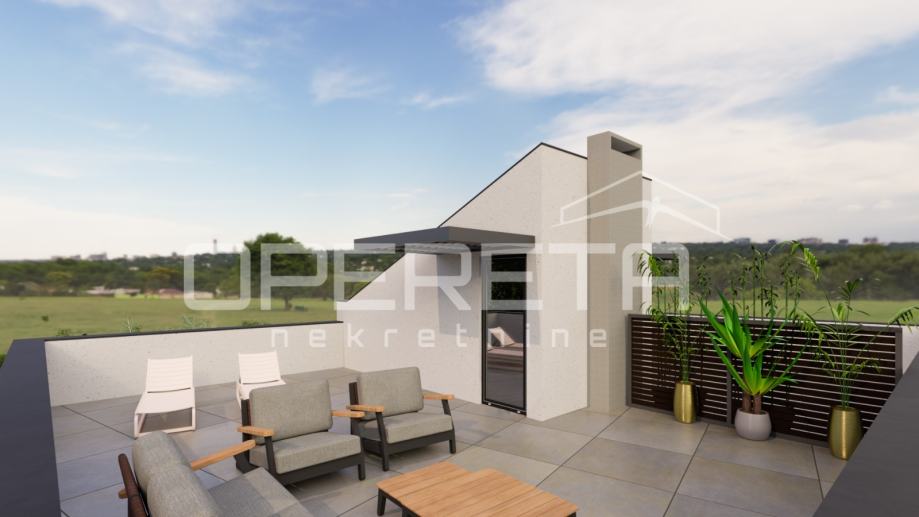Na katu su dvije spavaće sobe i kupaonica te hodnik sa izlazom na krovnu terasu površine 44 m2 s koje će se pružati predivan pogled na more.