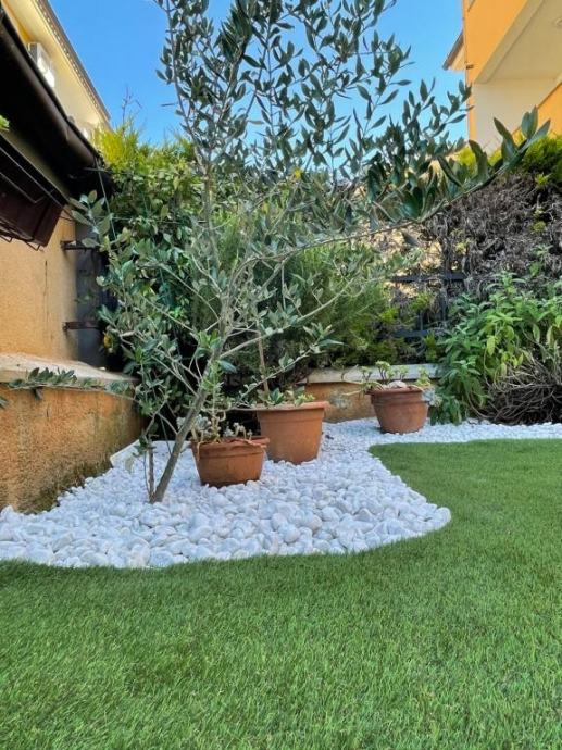 Stanu pripada i kućni vrt, idealan za druženje i odmor, kao i vlastito parkirno mjesto. Stan se prodaje potpuno namješten, spreman za useljenje ili turistički najam.