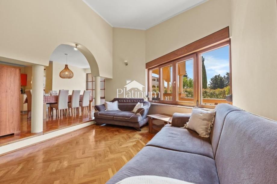Na prodaju je samostojeća kuća ukupne neto površine 280 m2, smještena svega 600 m od mora i uređene plaže. Kuća udobnost i privatnost kroz tri etaže kuće. Prizemlje sove prostrane kuće se sastoji od trosobnog stana, gdje svaka soba ima vlastiti izlaz na manju terasu, dnevnog boravka povezanog s kuhinjom i blagovaonom sa izlazom na veliku natkrivenu terasu, dvije kupaone i funkcionalno predsoblje s garderobom. Na prvi kat kuće se pristupa iz sasebnog predsoblja odmah kod glavnog ulaza što je vrlo praktično ako se jedinice koriste za turistički najam.Tu je smješten jednosoban stan sa spavaćom sobom, kuhinjom i blagovaonom, kupaonom, predsobljem i dvije terase sa kojih se pruža otvoreni pogled na more i otočje Brijuni. U suterenu je konoba s kaminom koja ima ulaz iz kuće kao i direktno iz dvorišta. Pored kuće je zaseban apartman s terasom. Okućnica je kompletno ograđena i uuređšena zelenilom i djelomično popločena s prostorom za dva vozila. Nekretnina je idealna za obiteljski život, odmor ili kao investicija za turističku namjenu.