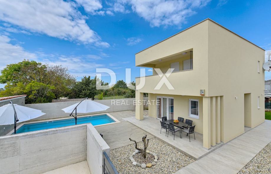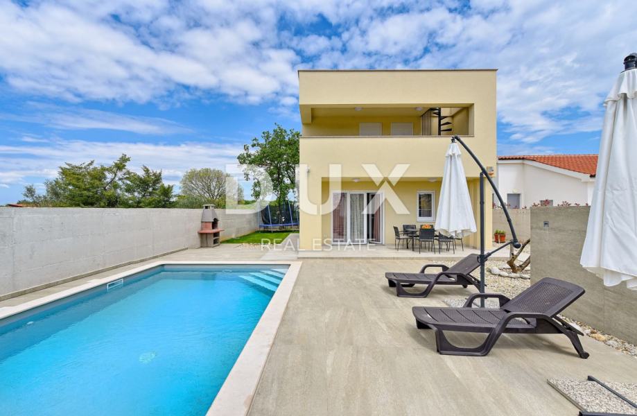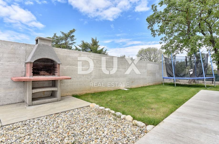 Unutar okućnice smjestio se bazen 24m2 sa sunčalištem, roštilj te blagovaonski stol za druženje s obitelji i prijateljima.