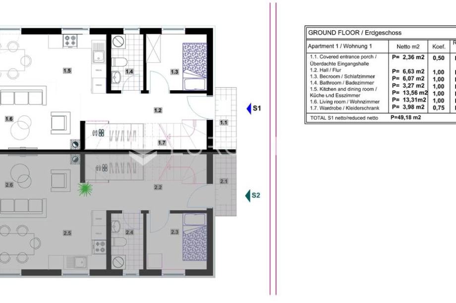 Na prodaji je projekt duplex kuće smještene u Peroju, udaljenom od mora i prvih plaža cca 1 km. Dio kuće koji prodajemo sastoji se od prizemlja i kata te krovne terase sljedećih karakteristika : - u prizemlju; ulazni hodnik s garderobom, spavaća soba, kupaonica, open space dnevni boravak s...Za ovu nekretninu kontaktirajte agenta na broj telefona +385 91 159 1155.Više na Eurovilla.hr, ID: 393650Direktan link: https://eurovilla.hr/nekretnina/istra-peroj-moderna-duplex-kuca-sa-pogledom-na-more-i-bazenom-nkp-111-21-m2/393650/-----For sale is the project of a duplex house located in Peroj, approx. 1 km from the sea and the first beaches. The part of the house that we are selling consists of the ground floor and first floor and the roof terrace with the following characteristics: - on the ground floor; entrance hall with... For this property contact our agent on telephone number +385 91 159 1155.More on Eurovilla.hr, ID: 393650Direct link: https://eurovilla.hr/en/property/istria-peroj-modern-duplex-house-with-sea-view-and-swimming-pool-111-21-m2/393650/...