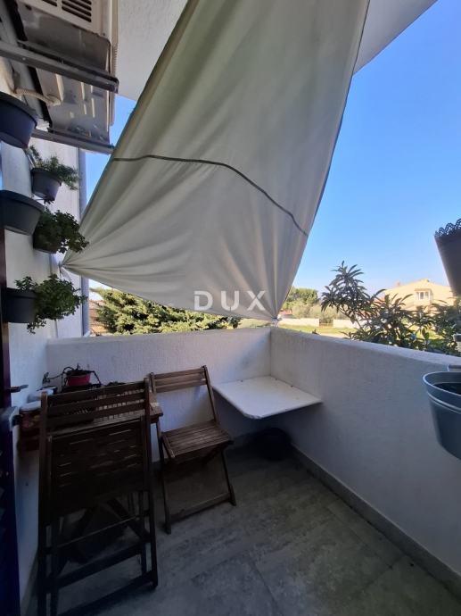 Na prodaju stan urednog vlasništva od 42m² smješten na prvom katu kvalitetne zgrade u samom centu mjesta. Ovaj praktični stan sastoji se od open-space zone koja obuhvaća kuhinju, blagovaonicu i dnevni boravak, kupaonicu i spavaću sobu. Iz dnevnog boravka izlazi se na opuštajuću terasu, idealnu za odmor i uživanje s pogledom na zelenu okolicu, dok se kroz zelenilo nazire more.