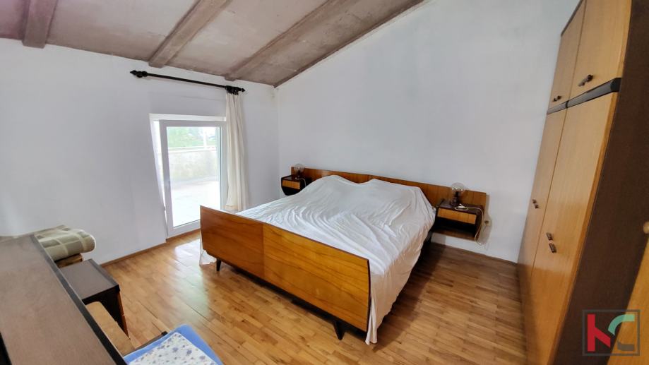 Kuća približne površine 193m2, obuhvaća dva stana koji imaju komunikaciju vanjskim stubištem.