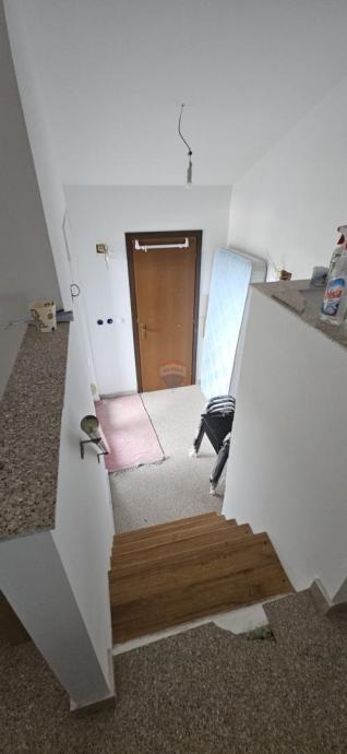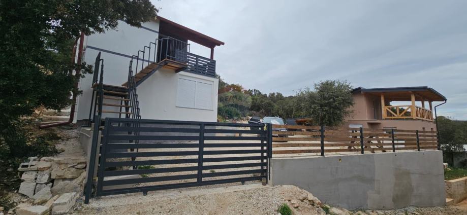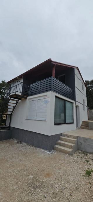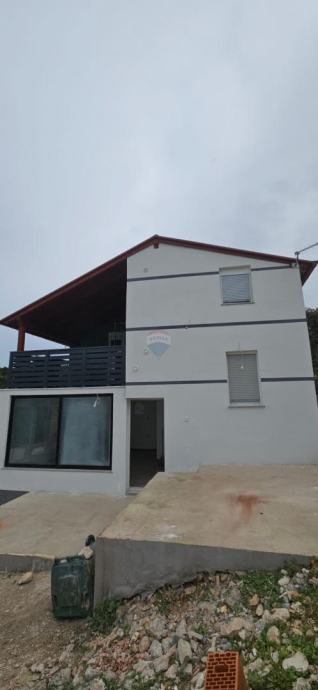 U prizemlju je spavaća soba, kuhinja s dnevnim boravkom i kupaonica. Na katu je otvoreni prostor s izlazom na terasu (10 m²) i kupaonica. Fasada je u izradi. Kuća koristi solarno napajanje i vodu iz spremnika, a prilaz je makadamskim putem. Udaljena je 2 km od centra, trgovine i kafića. Odlična prilika za miran odmor u blizini mora.