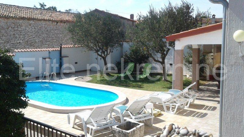 ISTRA, PERUŠKI - Prizemnica sa djelomičnim pogledom na more, bazenom i prostranom okućnicom. Krnica (Carnitia) se nalazi u unutrašnjosti Istre, oko 25 km jugoistočno od Pule, na regionalnoj cesti prema Puli. Duga Uvala, obližnje poznato ljetovalište i turističko naselje s kvalitetnom ponudom, nalazi se samo 3km od Krnice što je čini prikladnom destinacijom za odmor za one koji traže mir i prekrasnu prirodu i ne razmišljaju o vožnji do plaža neugodnost. Na mirnoj lokaciji u naselju Peruški prodaje se adaptirana prizemnica namijenjena kao kuća za odmor ili kuća za miran život. Okružena je prostranom bogatom okućnicom, parcela je ukupne veličine od 539 m2 gdje se nalaze veliki izbor raslinja kao što su magnolija, murva, maslina, zeleni zid pored bazena od jasmina i glicinija i pergola pokrivena sa gliciniju koja pruža hlad u toplim danima. Izdvajamo kao veliki plus privatnost i način na koji je koncipirana okućnica. Ograđena je sa visokom ogradom i prostranim portunom i tako postaje sigurno mjesto za vašu djecu i kućne ljubimce.