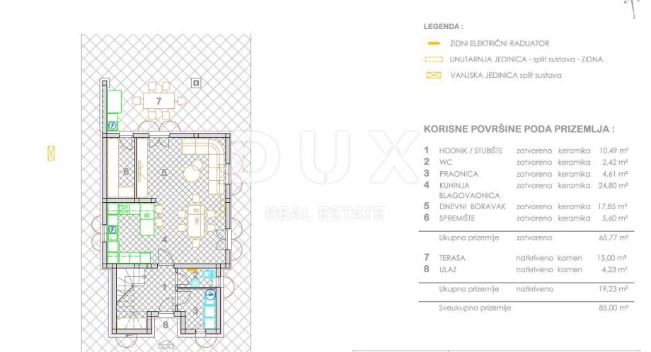 Prizemlje također nudi ljetnu kuhinju u kojoj možete pripremiti svoje najdraže delicije, vešeraj, spremište te gostinjski wc.