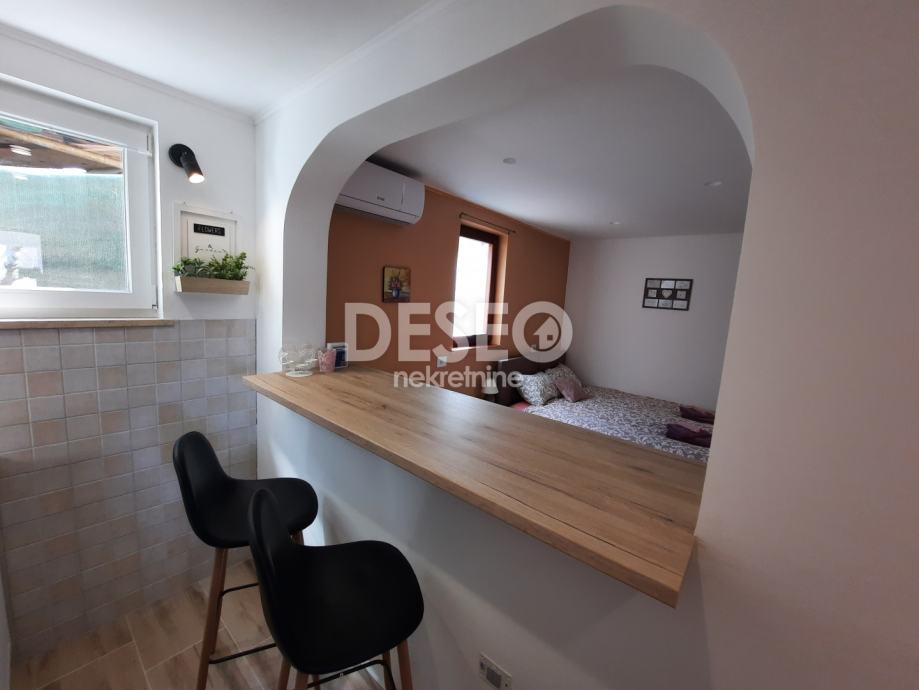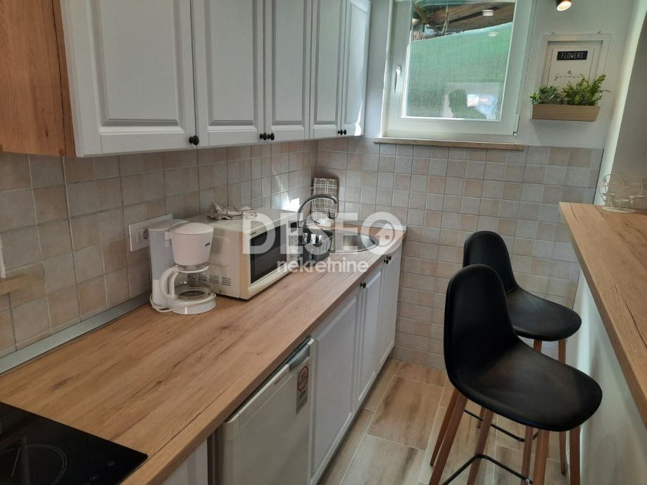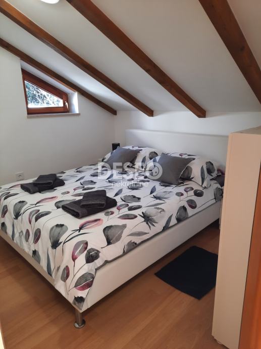 Kuća ima ukupno 100m2, dva studio apartmana u prizemlju i jedan u visokom potkrovlju. Renovirana je 2022. g.