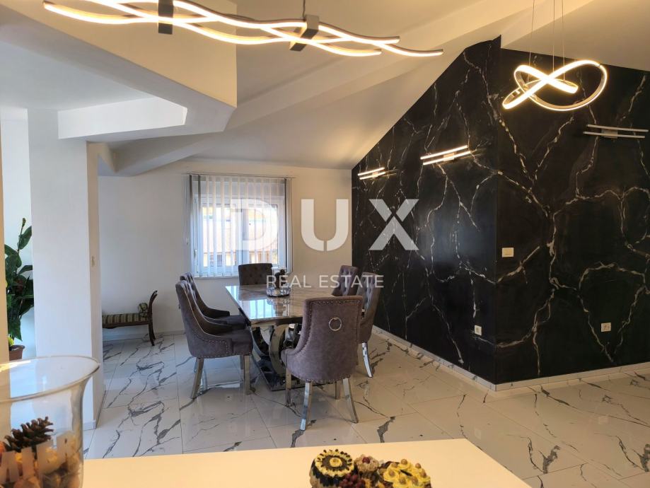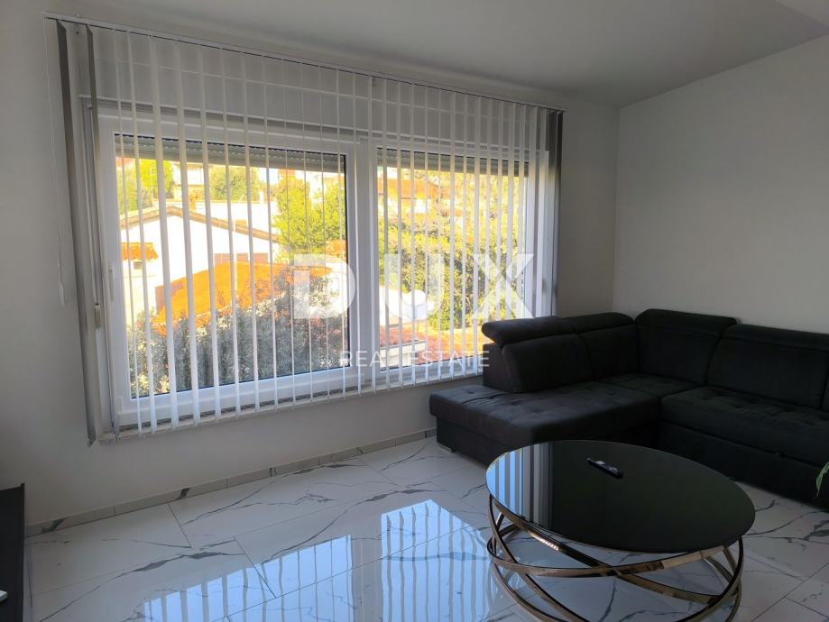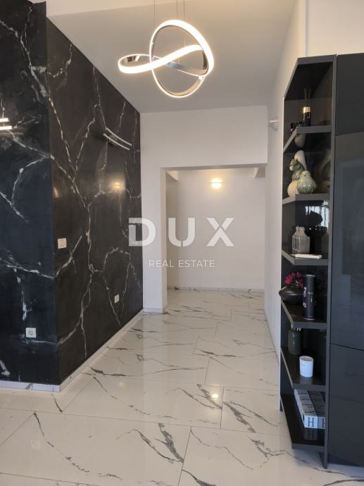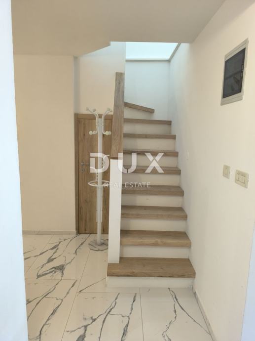 Stan se nalazi prvi red do mora, na drugom katu kvalitetne stambene zgrade. Stan ima privatni lift. Sastoji se od 2 spavaće sobe, dnevnog boravaka s kuhinjom i blagavaonom te kupatila. Stan ima pogled na more. Stan je luksuzno opremljen te je u potpunosti renoviran 2022. godine promijenjene su sve instalacije struje i cijevi vode, stolarija, keramika. Novi namještaj. Klimatizirano.