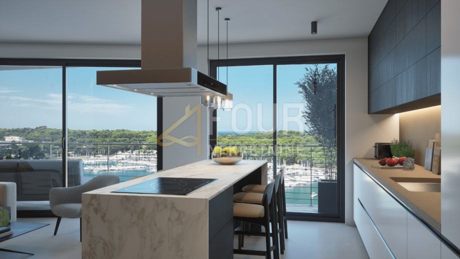 Kompleks pruža savršenu ravnotežu privatnosti i blizine svim sadržajima, a iz stanova se pruža očaravajući pogled na more i brodice usidrene u zaštićenoj marini Veruda.