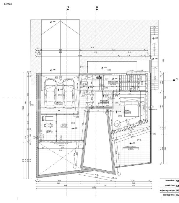 Druga etaža sadrži hodnik, spavaću sobu sa kupaonicom i terasom, garažu spojena ulazom u kuću, prostor predviđen za teretanu sa garderobom, te natkrivenu terasu s pogledom na more.
