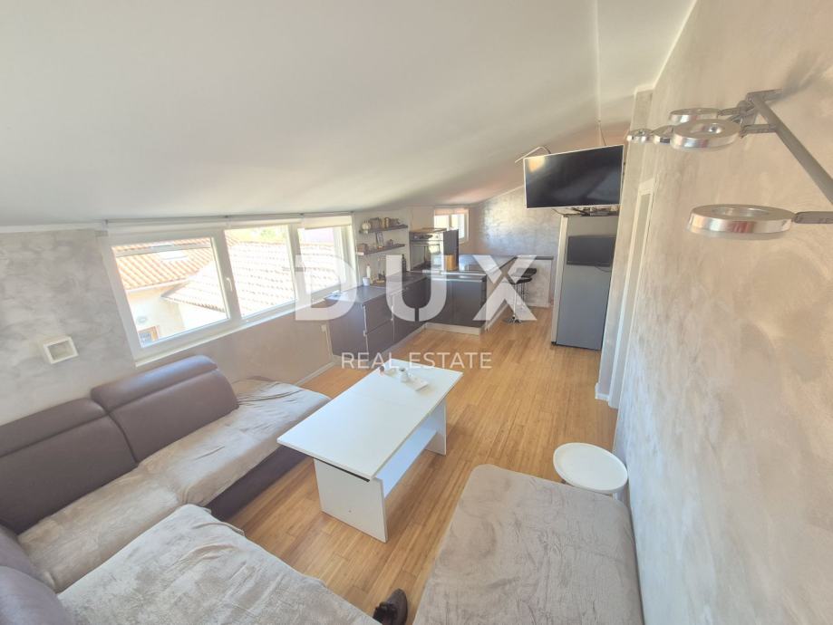 Stan ima ukupnu površinu od 60 m² raspoređeno na dvije etaže i sastoji se od dvije spavaće sobe, dvije višenamjenske prostorije i dva dnevna boravak s kuhinjom te 2 kupatila. Raspored prostorija omogućuje maksimalno iskorištavanje prostora i pruža dovoljno komfora kako za svakodnevni obiteljski život, tako i za turistički najam. Nekretnina se prodaje potpuno namještena, što budućem vlasniku omogućuje brzo useljenje bez dodatnih ulaganja.
