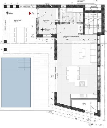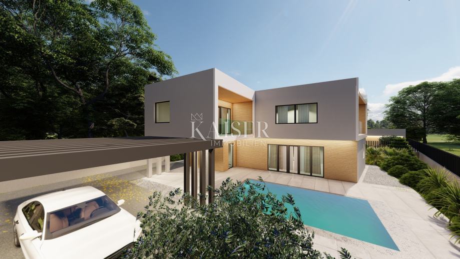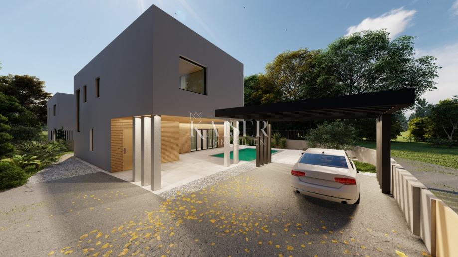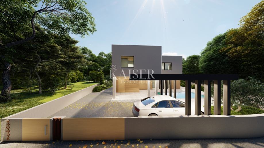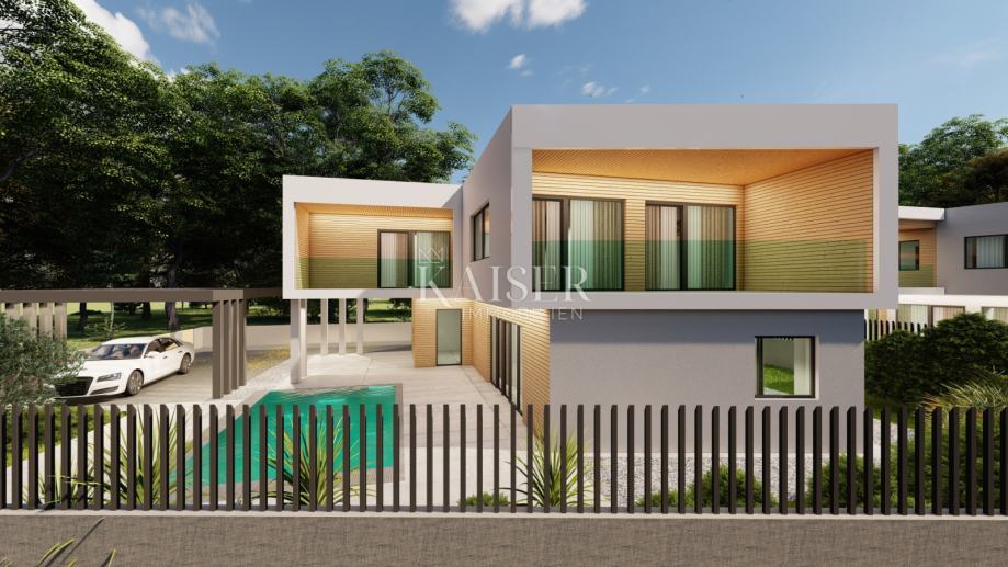 Uz prostrane unutarnje prostore, projekt uključuje i dva parkirna mjesta te bazen dimenzija 4,10 m x 6,66 m, što ovu nekretninu čini savršenim spojem luksuza i udobnosti.