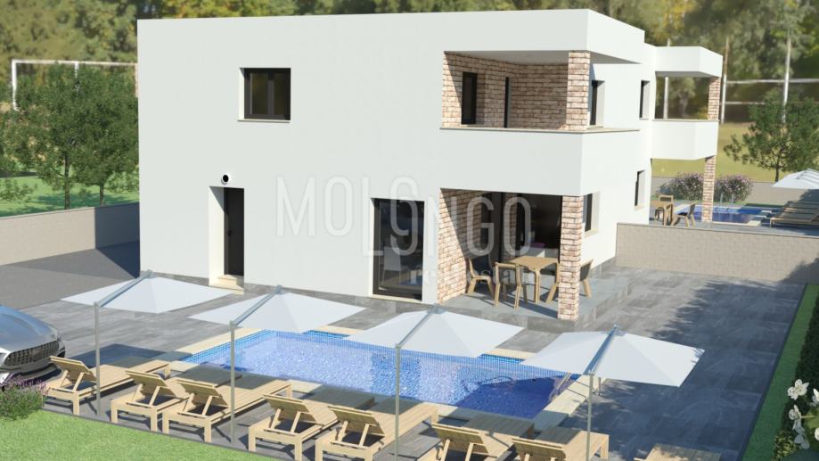 Na samo 5 km od Poreča i 1,5 km od mora, na rubu naselja između Poreča i Vrsara, smjestila se ova moderna dvojna kuća idealna za obiteljski život ili turističko iznajmljivanje.
