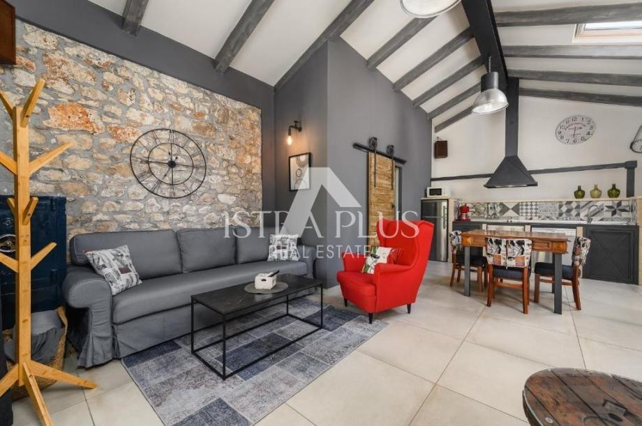 U okolici Poreča,4 km od mora, nalazi se potpuno renovirana kamena kuća, posljednja u nizu, na dvije etaže i ukupne površine 80 m².