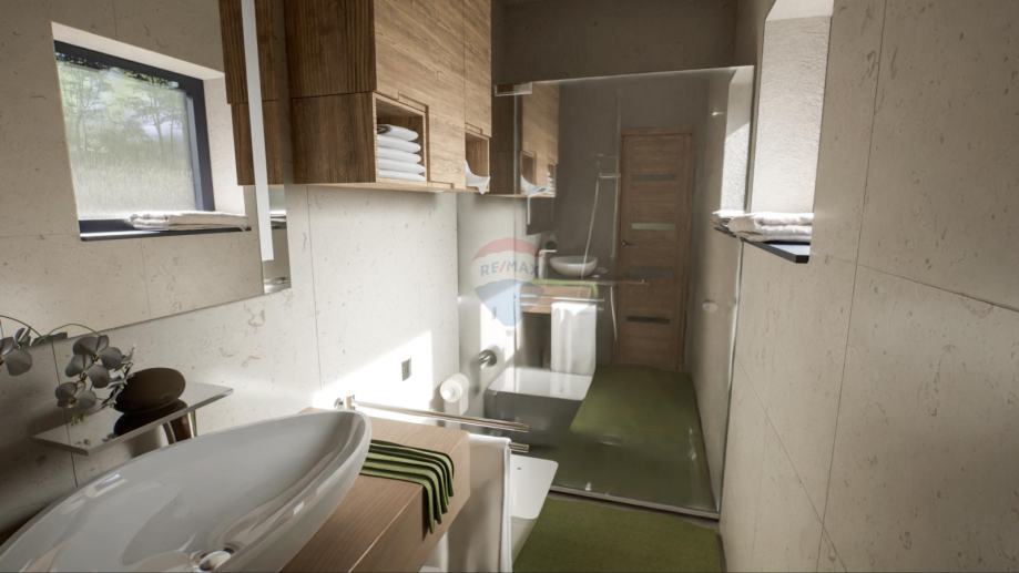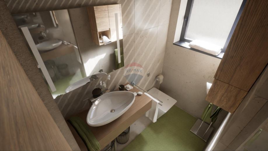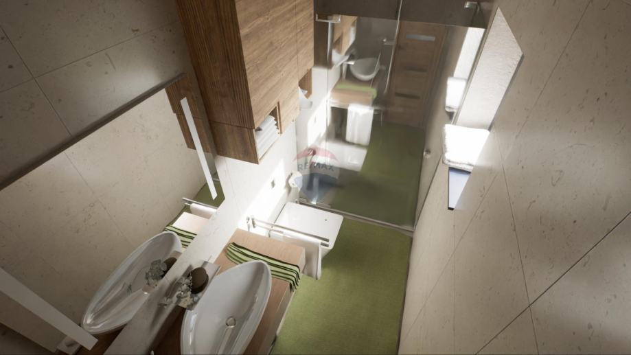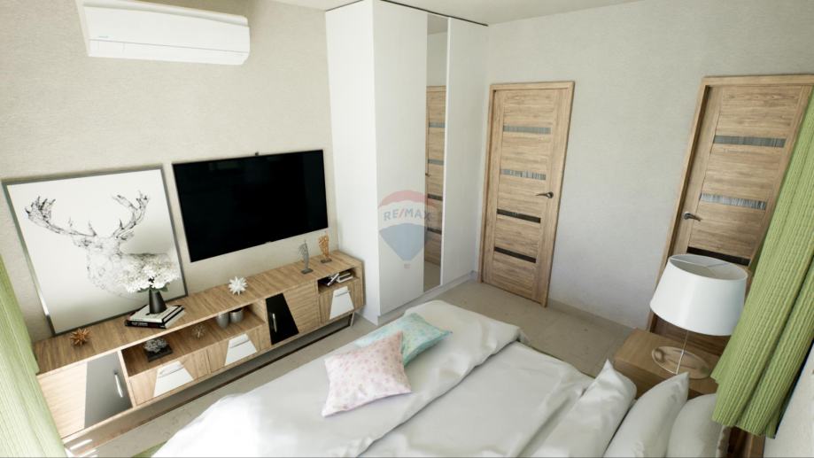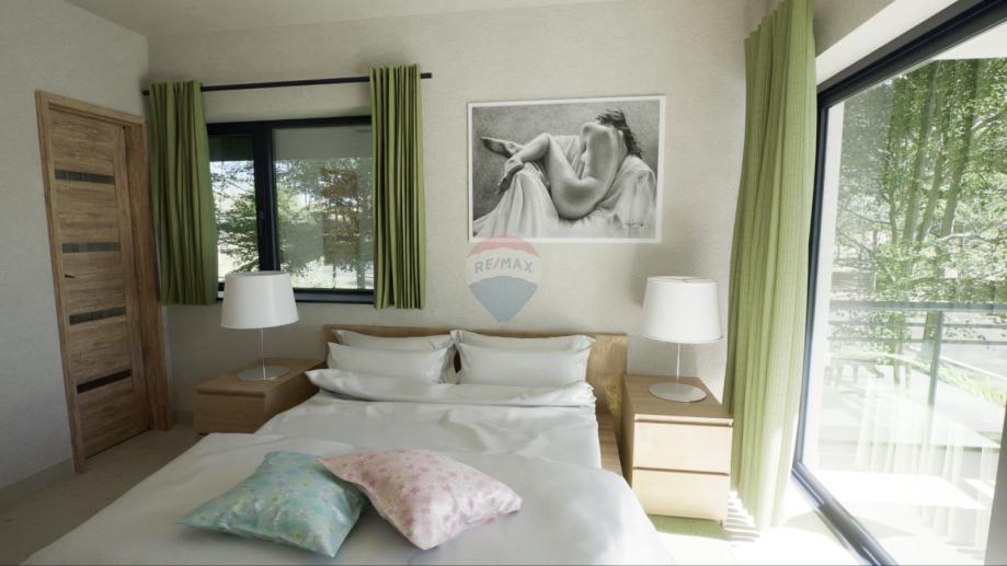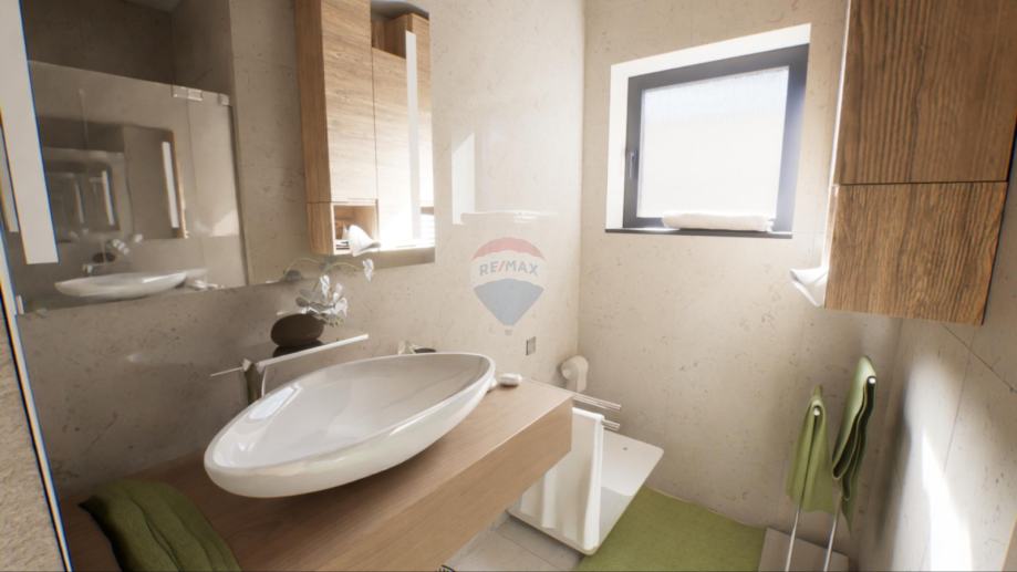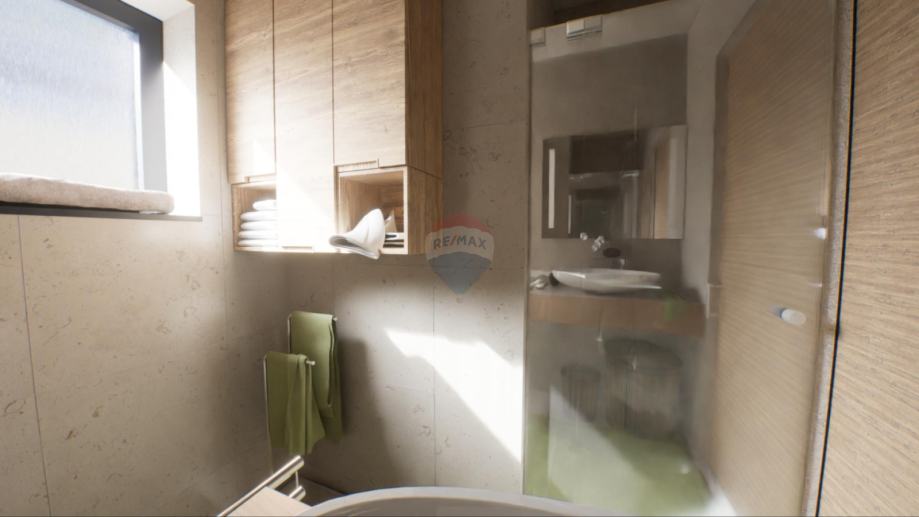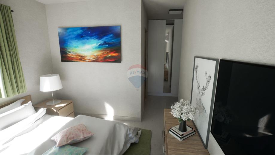 Stan se nalazi u zgradi sa samo dvije stambene jedinice. Stan ima vlastitu okućnicu na kojoj postoji mogućnost izgradnje bazena.