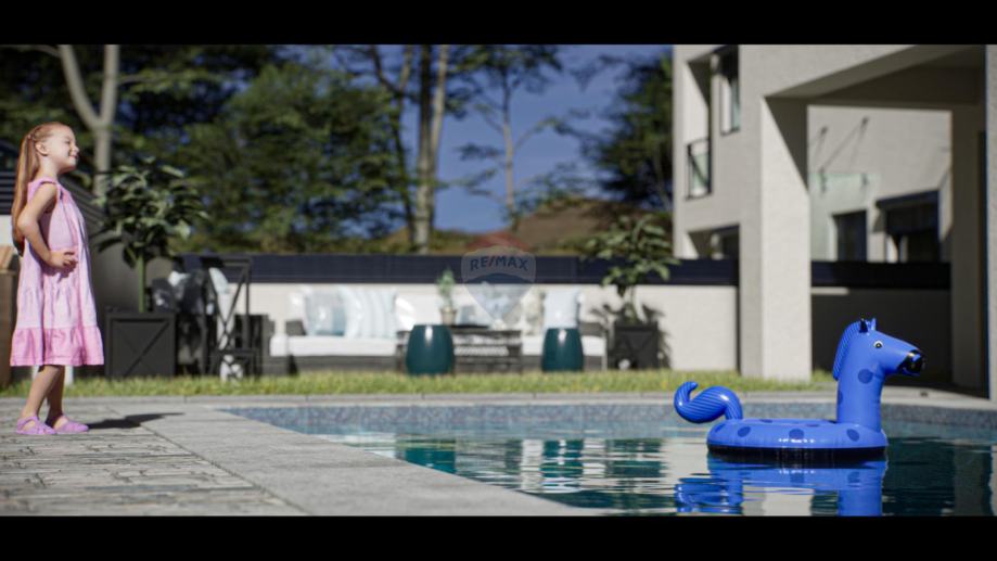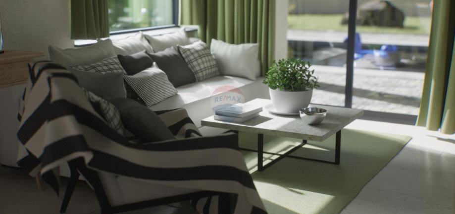 izlazi na prostranu okućnicu stana koja pripada u vlasništvo i na kojoj postoji mogućnost izgradnje vanjskog bazena. Stanovi se grade vrhunskim materijalima i uz primjenu