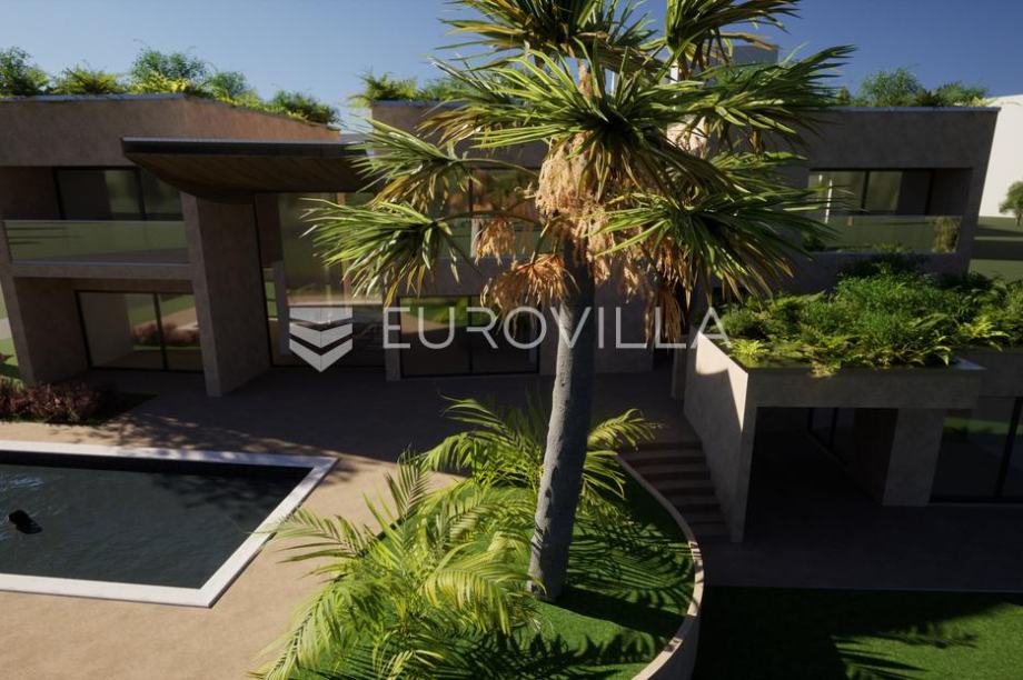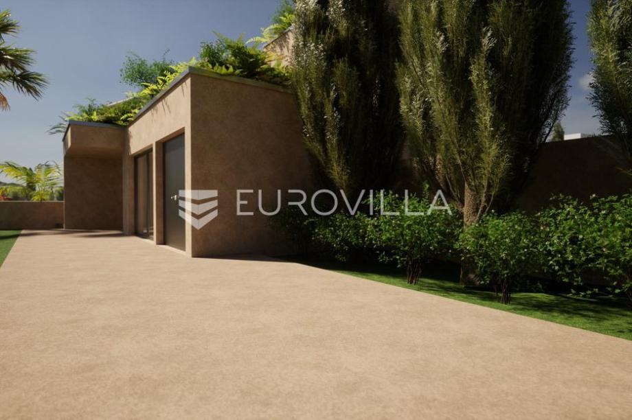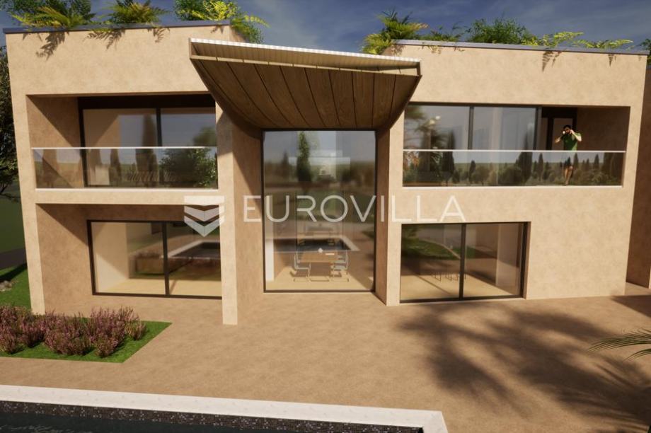 Na atraktivnoj lokaciji nedaleko od centra Poreča, prodaje se građevinsko zemljište ukupne površine 3.594 m². Dio zemljišta od 1.050 m² namijenjen je gradnji luksuzne obiteljske kuće. Projekt vile - moderni luksuz na 3 etaže (netto površina 359,83 m²): Prizemlje: garaže, ulazni hodnik,...
