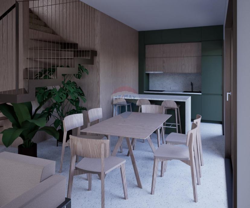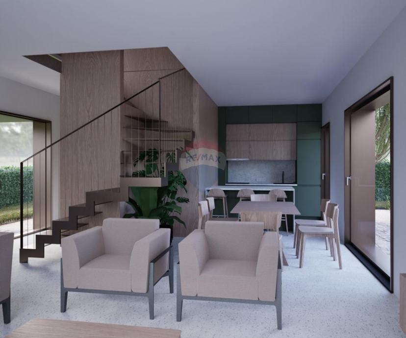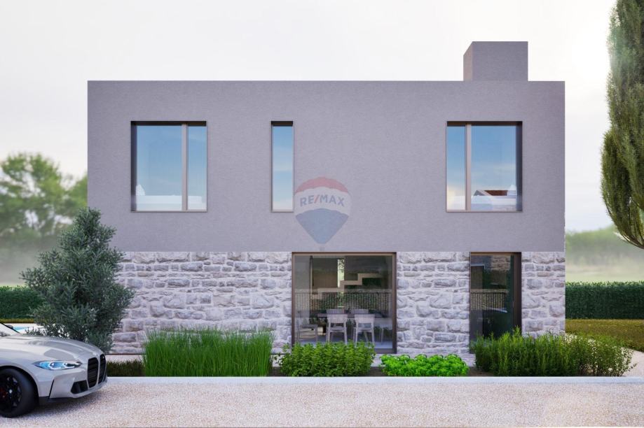U prizemlju se smjestila kupaona za goste, vešeraj , kuhinja s blagovaonom te velika dnevna soba u open space konceptu. Na okućnici kvadrature 800 m2 smjestio se bazen te ljetna kuhinja s nadstrešnicom za uživanje u ljetnim mjesecima.