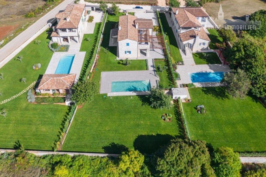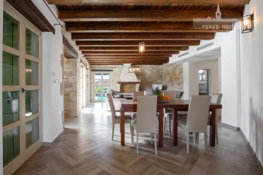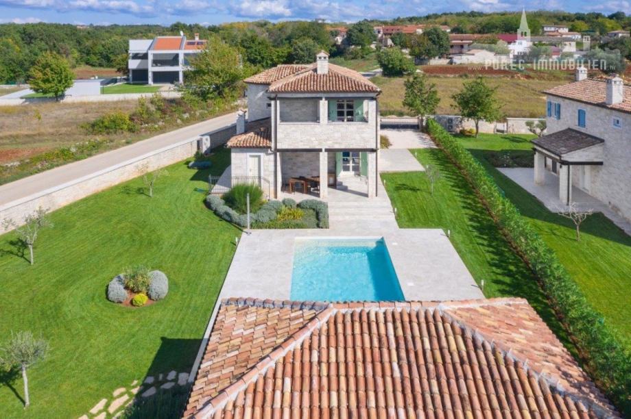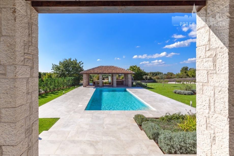 Ova impresivna kamena vila sa bazenom nalazi se u centralnoj Istri, a udaljena je samo 5 km od prvog manjeg gradića u kojem se nalazi trgovina, restoran, ambulanta, itd.