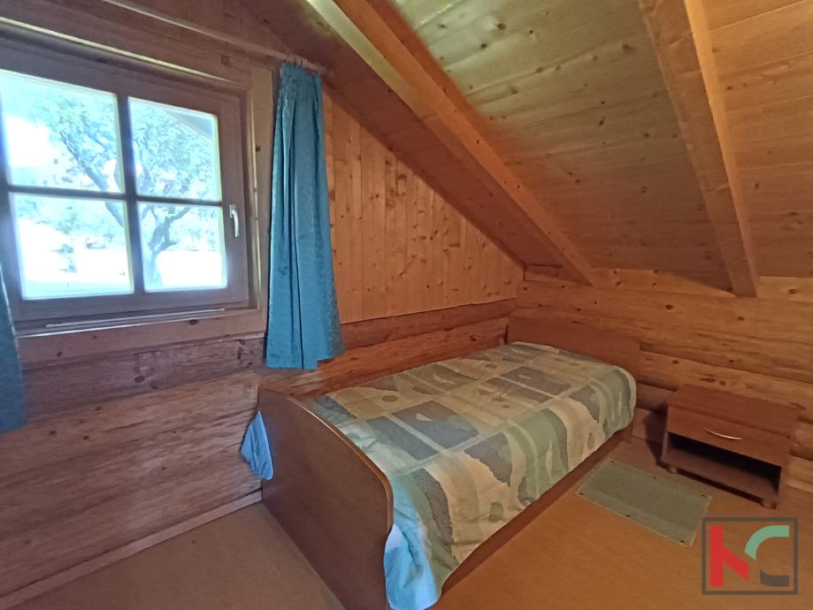 Ova autentična drvena kuća, smještena na odličnoj lokaciji u Istri, nudi jedinstven spoj šarma i funkcionalnosti. Izrađena od debelih drvenih greda, pruža prirodnu izolaciju i ispunjava prostor svježim, umirujućim mirisom drva.