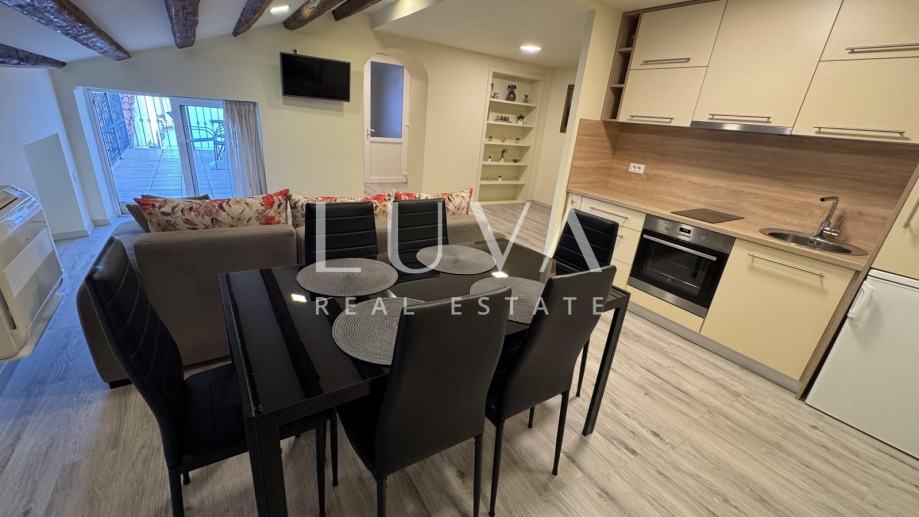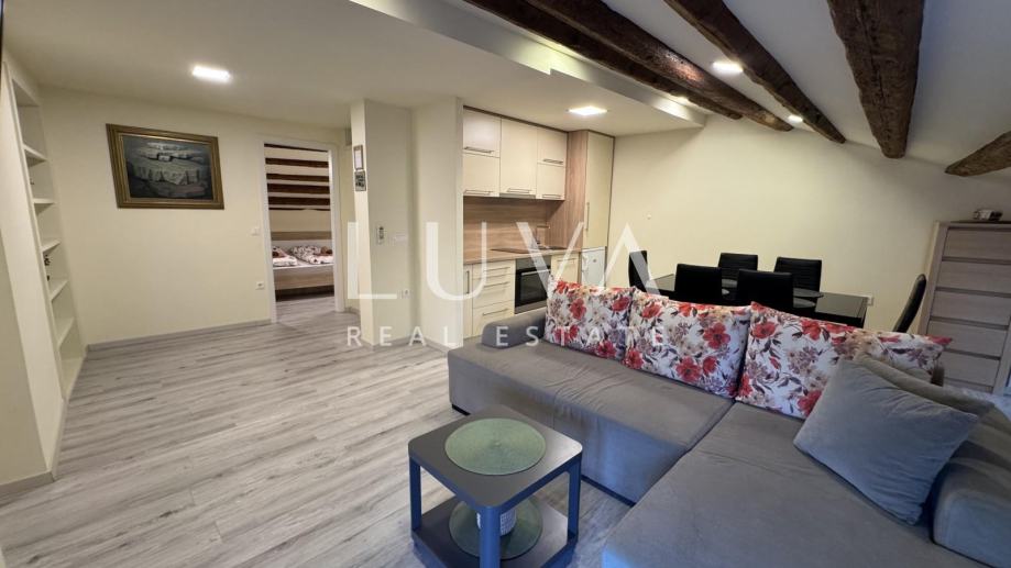 Ono što ovaj stan čini zaista posebnim jest njegova pozicija u starogradskoj jezgri, tik uz more, s korakom do plaže, restorana, trgovina, kafića, banke, pošte, škole i vrtića. Bilo da tražite dom za cijelu godinu, idealan stan za ljetovanje ili sigurnu investiciju u turistički najam, ova nekretnina ispunjava sve uvjete.