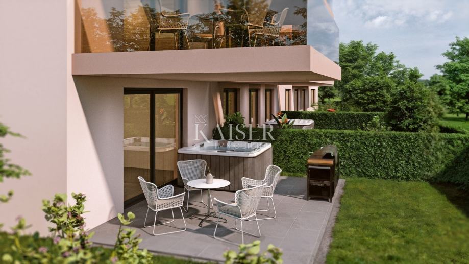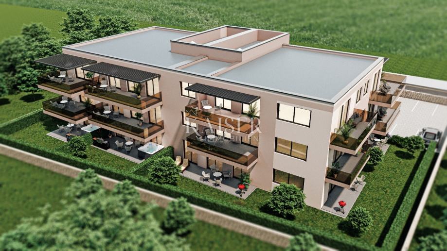 Kaiser Immobilien nudi u prodaju elegantan jednosoban stan smješten u prizemlju zgrade udaljen samo 5 minuta vožnje od Poreča.