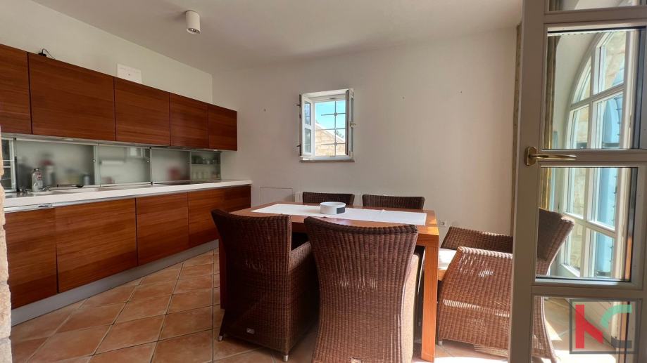 Ova prekrasna villa izgrađena je u starom istarskom stilu kamenih kuća i obuhvaća prizemlje u "open space" konceptu gdje se smjestio dnevni boravak, kuhinja i blagovaona, spavaća soba, kupatilo i spremište.