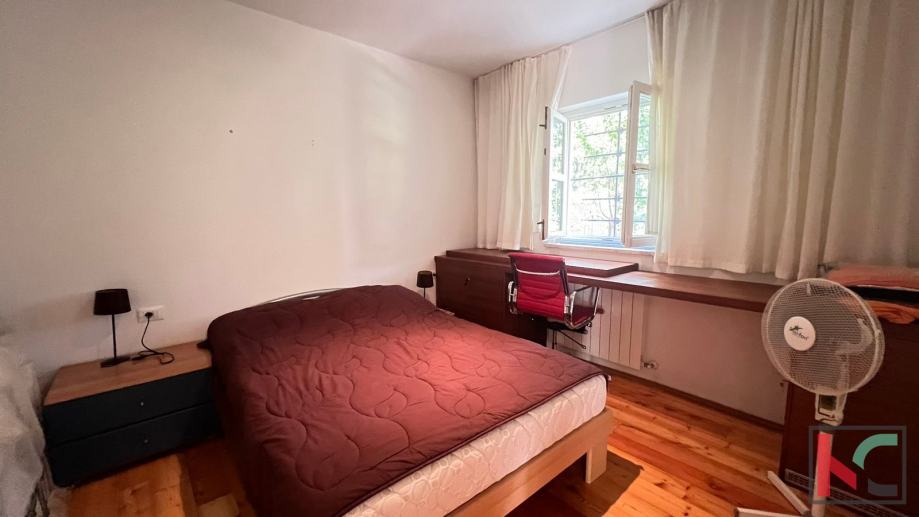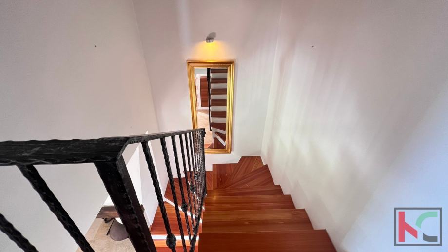 Na katu, do kojeg se dolazi unutarnjim stepenicama kao i vanjskim kamenim stubištem kroz veliku natkrivenu terasu nalaze dvije spavaće sobe koje imaju izravan izlaz na terasu, dvije velike kupaonice i garderoba.