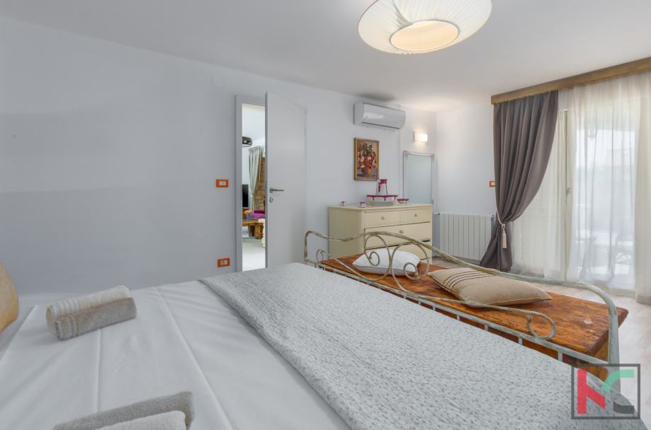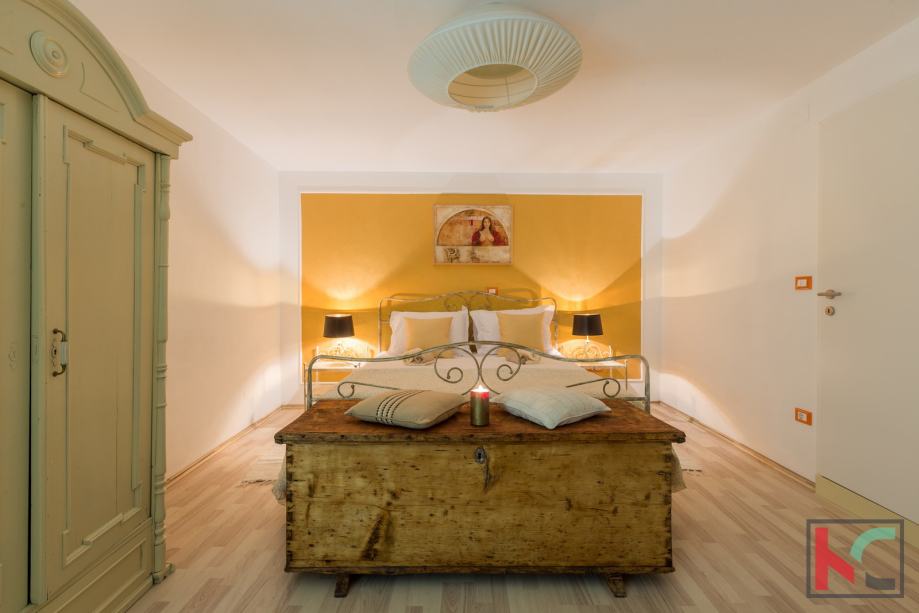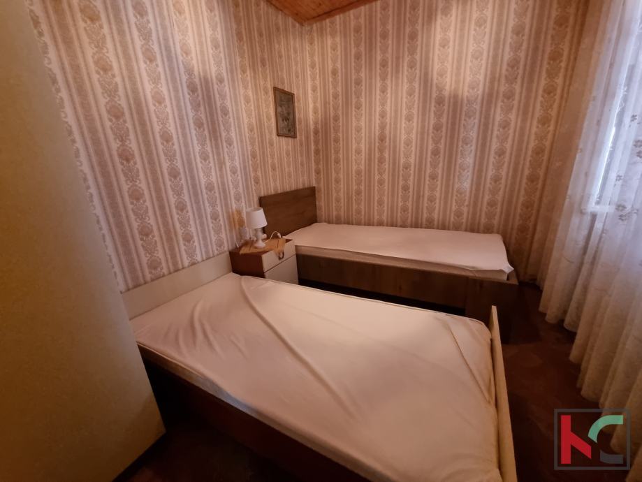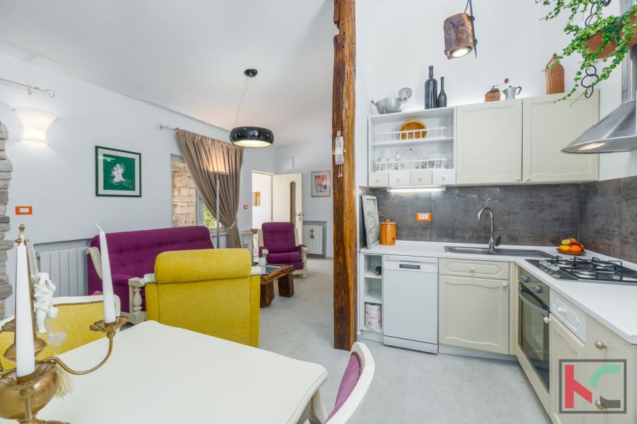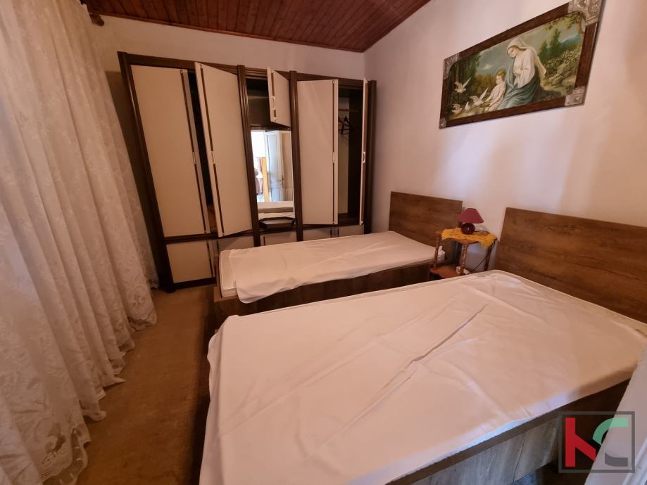 U prizemlju uređene i ograđene okućnice nalaze se dva stana, od kojih je jedan kompletno renoviran 2021. godine veličine 74m2, te još jedan stan za renovaciju sa konobom ukupne površine od 115m2.