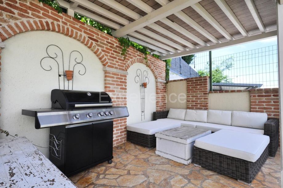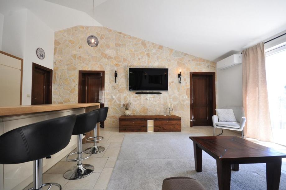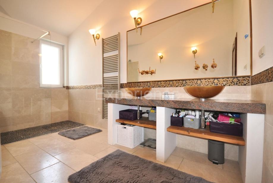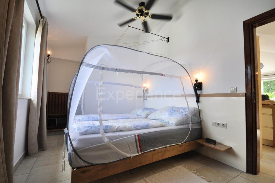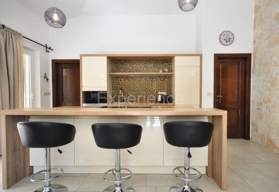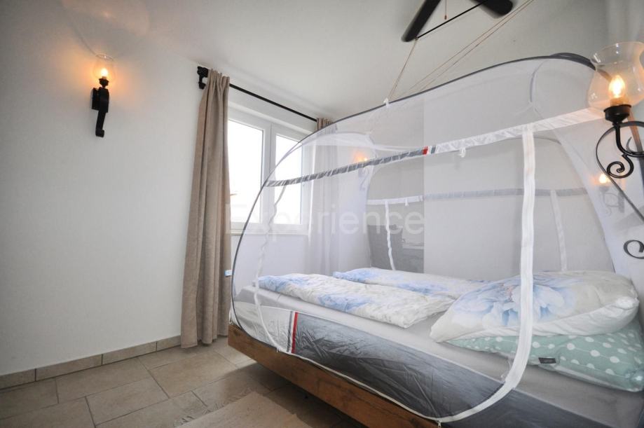 Dodatne značajke: • kuća je izgrađena 2013. godine, odmah useljiva bez dodatnih ulaganja, • klima uređaji za grijanje i hlađenje, • podno grijanje u kupaonicama, • PVC stolarija s komarnicima i tradicionalnim drvenim griljama (škure), • uređeno dvorište s travnjakom, mirisnim biljem, natkrivenom ljetnom kuhinjom i roštiljem, • natkriveni parking za dva automobile i spremište, • svaki stan ima zaseban ulaz, što dodatno osigurava privatnost, • priključak na kanalizaciju, brzi internet i SAT TV.