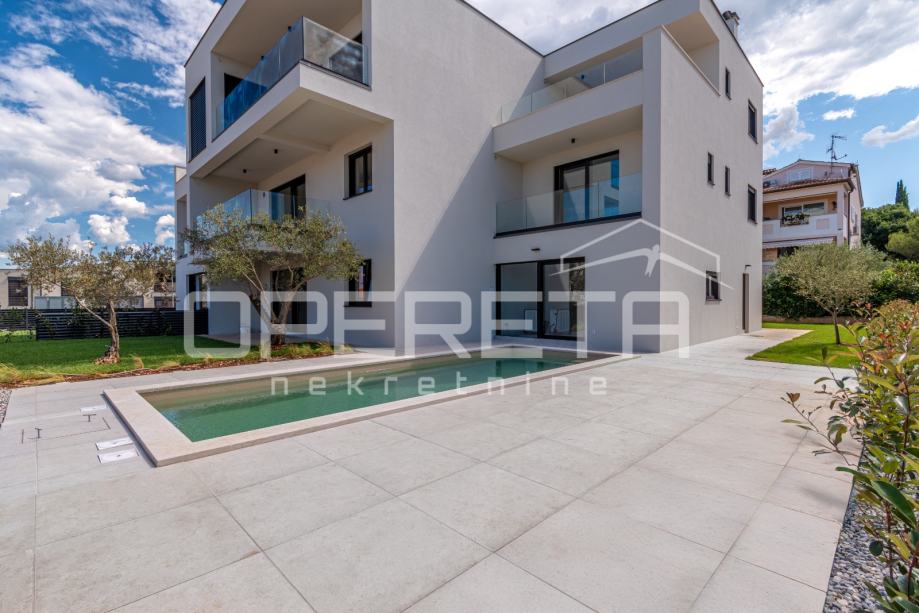 Istra, Poreč-kuća u nizu s bazenom, pogled more