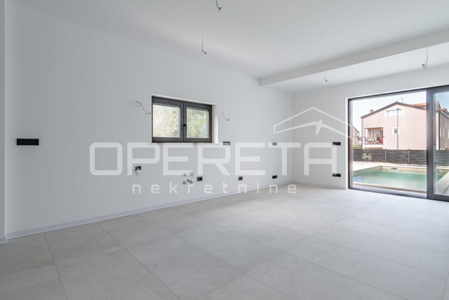 Iz naše ponude izdvajamo kuću u nizu na tri etaže, NKP 106m2 sa terasama ukupno 125m2 i bazenom od 24 m2.