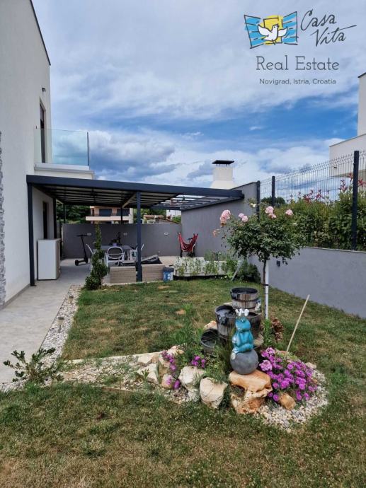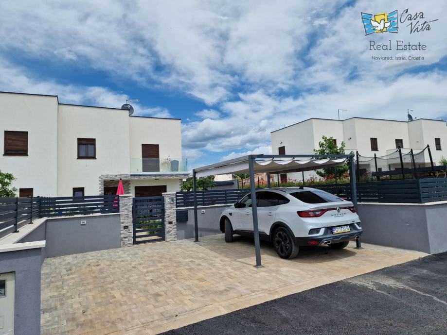 U okolici Poreča ( 10km ) prodaje se ova moderna kuća u nizu, izgrađena 2022. godine, koja nudi 110 m2 stambenog prostora. Smještena u mirnom okruženju, ova nekretnina nudi savršenu ravnotežu između modernog života i prirodne ljepote.