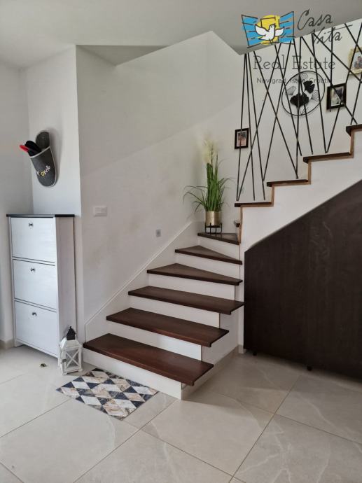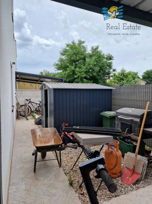 Ova kuća s tri spavaće sobe osmišljena je kako bi pružila maksimalnu udobnost i funkcionalnost. Prostrana terasa i uređena okućnica omogućuju uživanje u sunčanim danima u privatnosti vlastitog vrta, dok vrtna kućica pruža dodatni prostor za pohranu ili hobi aktivnosti. Unutarnji prostori opremljeni su modernom kuhinjom s aparatima, perilicom posuđa i rublja, te udobnim namještajem kao što su kreveti,ormari...