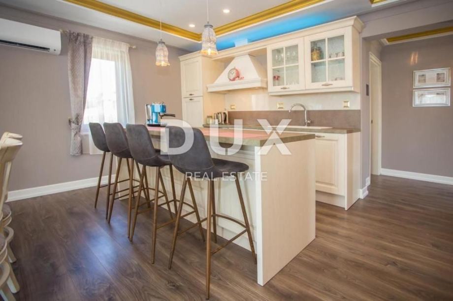 Ulaskom u vilu smjestio se manji hodnik koji odvaja privatni unutrašnji prostor od dijela za dnevni život i zabavu. Tako se u prostranom i maksimalno otvorenom dijelu za dnevni život smjestila moderna i u potpunosti opremljena kuhinja s otokom, blagovaona idealna za obiteljski ručak ili kasno večernju zabavu s prijateljima, te prostrani dnevni boravak namještan tako da vaši najdraži filmovi i serije budu još zanimljiviji. Komotan i kvalitetan namještaj zasigurno tome doprinosi.