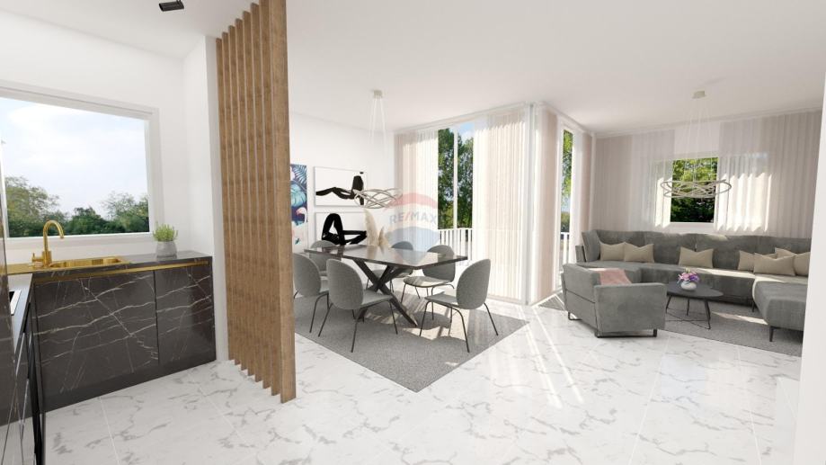 Prodaje se luksuzan i extra moderan penthouse u novogradnji u Poreču, svega 800m od mora. Izuzetno profinjeno osmišljena zgrada, sa svega 4 stambene jedinice od 82-91 m2. Stan na katu sastoji se od kuhinje, blagovaonice, velikog dnevnog boravka iz kojeg izlaz vodi na prostranu i polunatkrivenu terasu veličine 26m2. Stan ima tri spavaće sobe i dvije kupaonice, te jedan toalet. Maksimalna se pažnja posvetila tome da budući vlasnici uživaju u oazi vlastitog doma. U gradnji će biti korišteni materijali visoke kvalitete, aluminijska stolarija, te će biti postavljena kvalitetna keramika i sanitarije. Podno grijanje provedeno kroz cijeli stan, sve su prostorije klimatizirane. Stanu pripada i krovna terasa sa kupaonicom te dodatnom prostorijom za još jednu dodatnu spavaću sobu ili saunu, wellnes, te dva parkirna mjesta. Stan je odličan izbor za ugodan obiteljski život zbog blizine apsolutno svih bitnih sadržaja, ali i dobra investicijska prilika kao ulog za bavljenje turizmom. Predviđeni rok završetka radova je početak 2023.