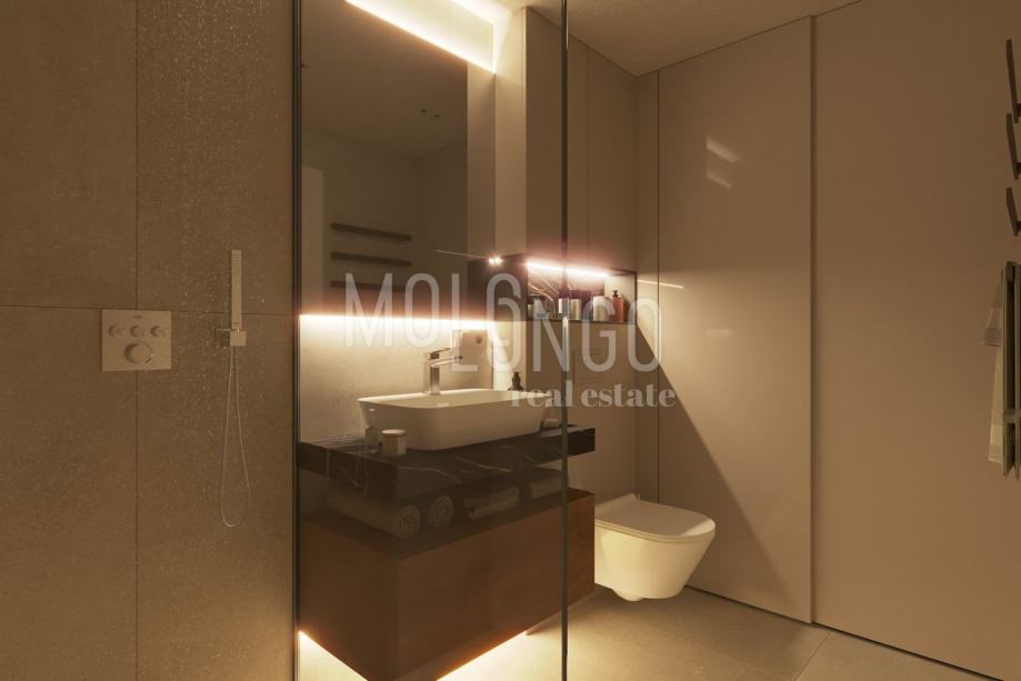 **Kvaliteta gradnje:** Zgrada se gradi prema visokim standardima s **A+ energetskim certifikatom**. Stan će biti opremljen vrhunskom keramikom, parketom i stolarijom s dvostrukim IZO staklom punjenim **argonom** za maksimalnu izolaciju. Sistem grijanja i hlađenja predviđen je s inverter klimama u svim sobama i dnevnom boravku, dok će električno podno grijanje biti postavljeno u kupaonicama.