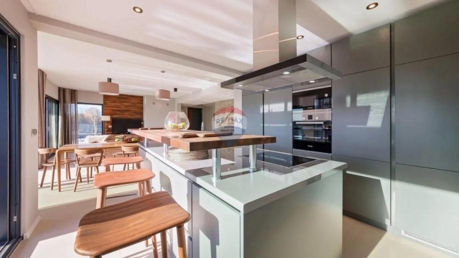 Nekretnina se prostire na tri etaže, pažljivo projektirane kako bi pružile maksimalan komfor i funkcionalnost. U suterenu se nalazi privatna wellness oaza s vrhunski opremljenom teretanom, turskom i finskom saunom te prostranom kupaonicom, stvarajući prostor idealan za opuštanje i regeneraciju u vlastitom domu. Cijela kuća opremljena je klima uređajima, podnim grijanjem i sustavom rekuperacije zraka, čime je osigurana optimalna temperatura i kvaliteta zraka tijekom cijele godine.