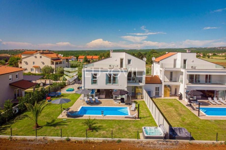Ova luksuzna vila u blizini Poreča, na samo pet kilometara od uređenih plaža koje se nalaze u prekrasnom Poreču, prostire se na tri etaže koje ukupno čine površinu od 244 m2. Prizemlje ove vile se sastoji od velikog otvorenog dnevnog boravka s modernom kuhinjom koja je rađena po mjeri,...