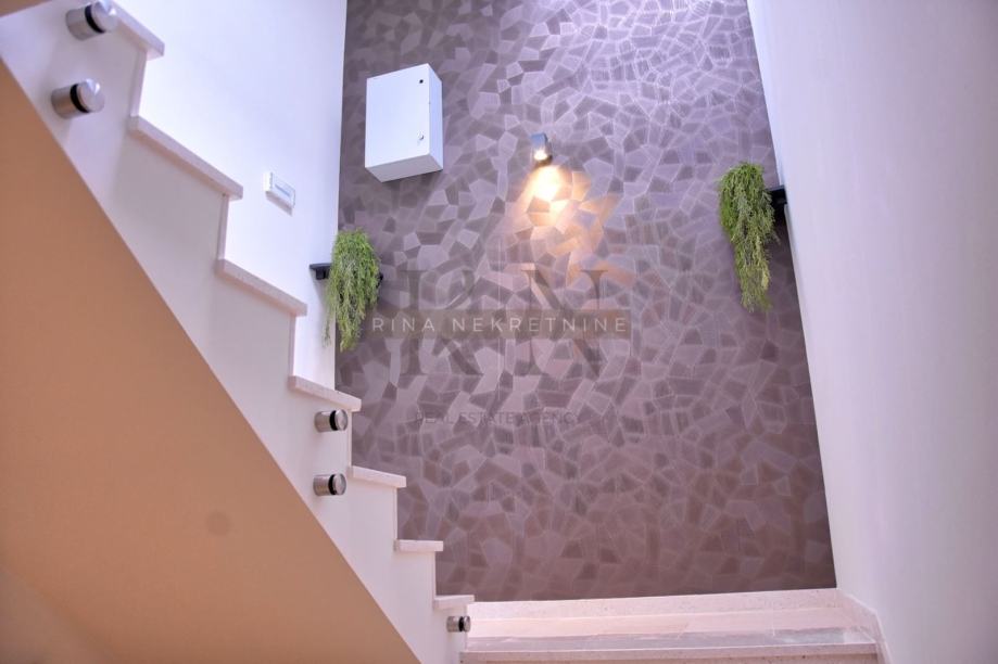 Penthouse se nalazi u dovršenoj zgradi iz 2023.godine do kojeg vodi uređeno kamenom obloženom stubište ili lift marke Khone.