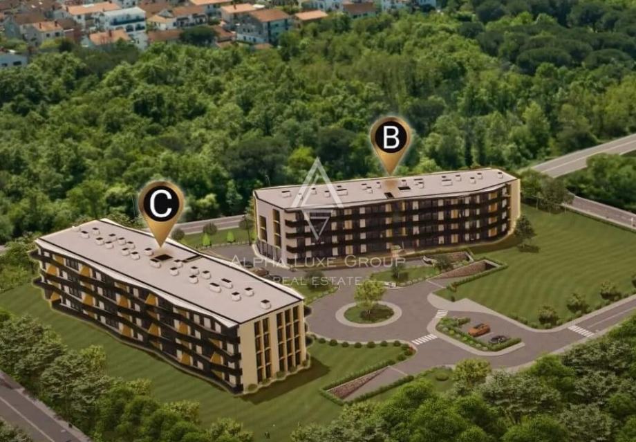 Smješten u mirnom dijelu Poreča, samo 800 metara od mora, ovaj vrhunski stambeni kompleks nudi premium životne prostore s idealnim spojem modernog dizajna i funkcionalnosti. Projektiran od strane vrhunskih arhitekata, kompleks se sastoji od dvije zgrade, B i C, s četiri nadzemne etaže namijenjene stanovima i podzemnom etažom za garažna parkirna mjesta i spremišta.