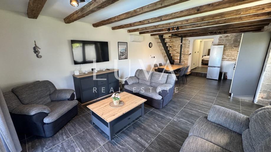 - Renovirane drvene grede koje daju prostoru toplinu i autentičan istarski šarm