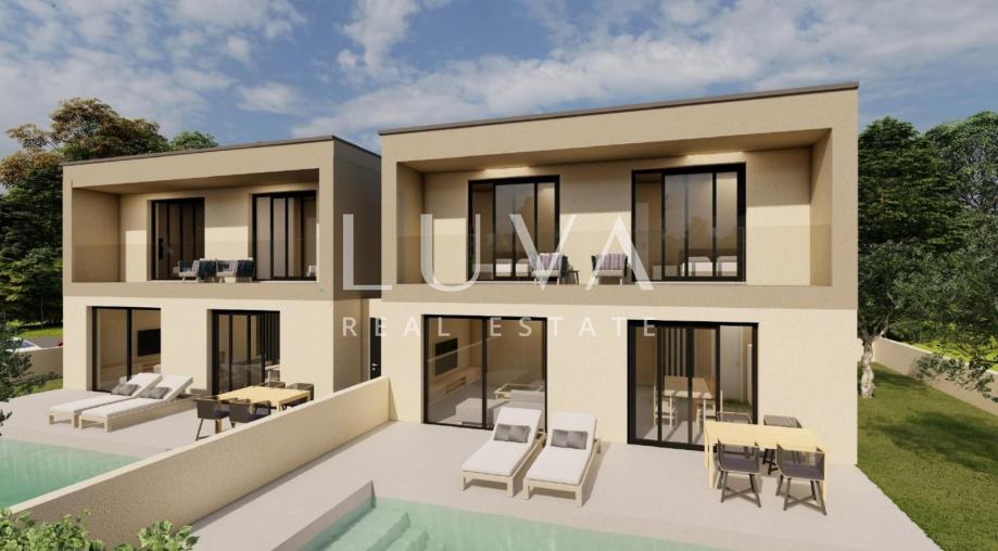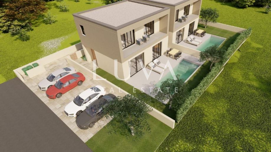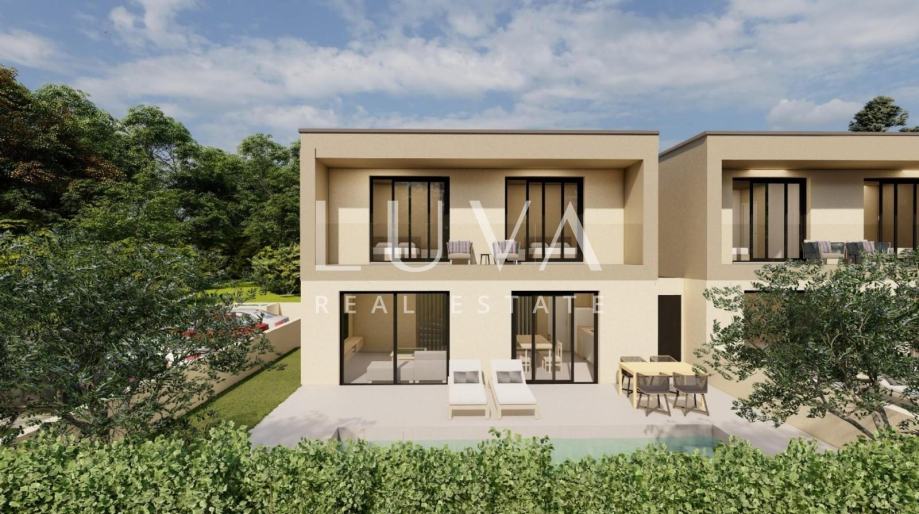 Na prodaju su nove moderne kuće s bazenom, smještene u mirnom naselju Žbandaj, svega nekoliko kilometara od Poreča i mora.