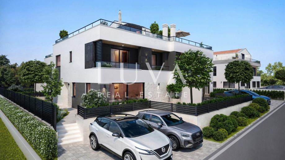 Kuća ima zaseban ulaz i smještena je na mirnoj poziciji unutar kompleksa, što pruža dodatni osjećaj privatnosti i komfora. Blizina mora, svih važnih sadržaja te visoka kvaliteta gradnje čine ovu nekretninu izvrsnom investicijom i mjestom gdje možete uživati u modernom, udobnom i funkcionalnom životnom prostoru.