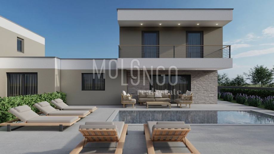 - **Prizemlje:** Lijepa kuhinja s blagovaonicom i dnevnim boravkom u open-space konceptu, s izlazom na terasu i vrt s bazenom 7mx3m