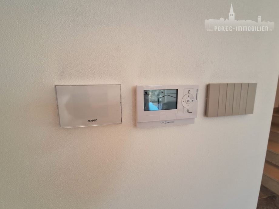 Kompletna kuća se grije putem podnog grijanja i ventilkolektora, te se hladi putem ventilkolektora koje pokreće toplinska pumpa marke Viesmann.