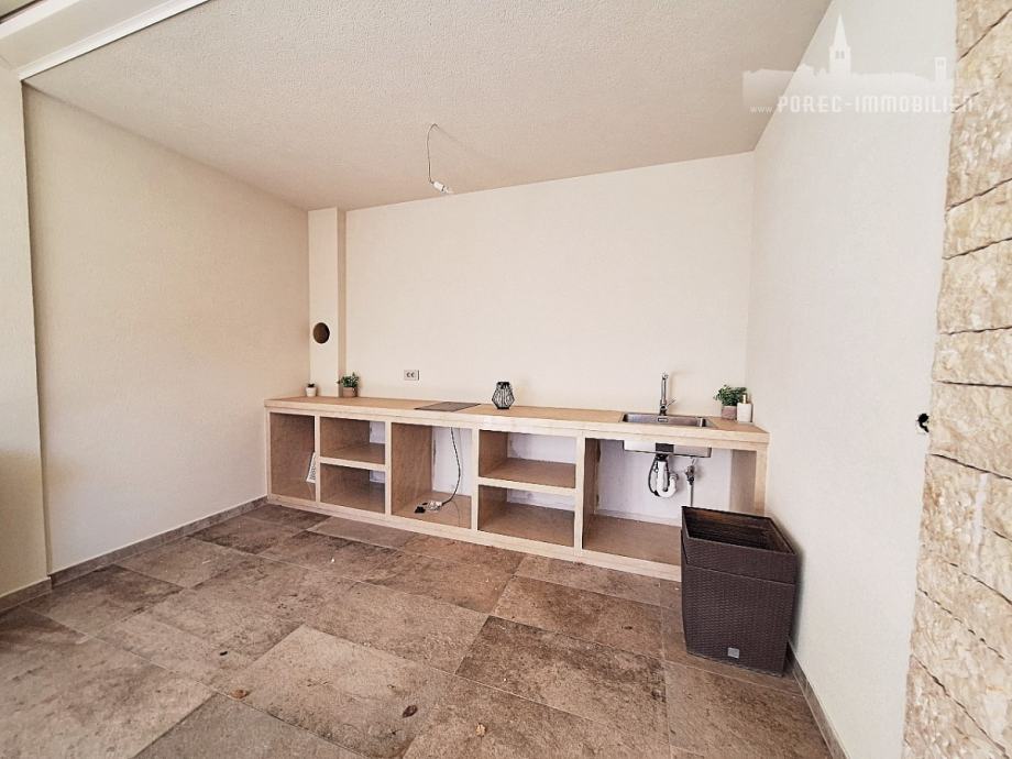 U prizemlju kuće se nalazi velika natkrivena terasa na kojoj je sve pripremljeno za ljetnu kuhinju, koja će biti dovršena o trošku prodavatelja.